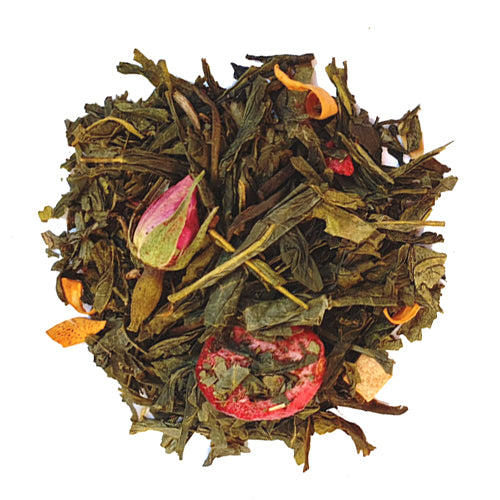 Ainekset: Vihreä tee, kermakaramellipalat (makeutettu kondensoitu MAITO, sokeri, glukoosisiirappi, voirasva, sorbitoli, emulgointiaine: rasvahappojen mono- ja diglyseridit), aromi, ruusunnuppu, appelsiininkukka, pakastekuivatut vadelmat ja karpalot.
