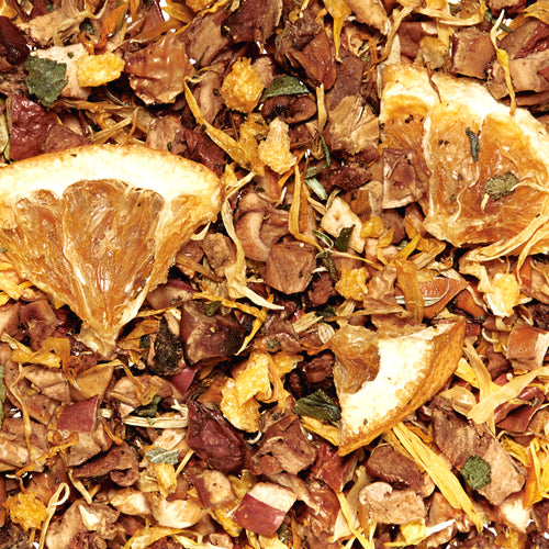 Ainekset: omena, appelsiini, luonnollinen aromi, pakastekuivattu mandariini, kehäkukka, villimansikanlehti.