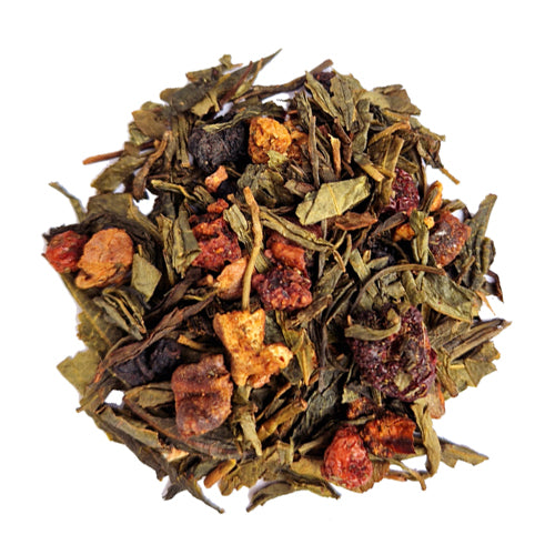 Vihreä tee, päärynä, karhunvatukka, mustikka, punaherukka, kaneli, luonnollinen aromi, aromi. Saattaa sisältää jäämiä pähkinästä.