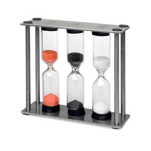 Tyylikäs tiimalasi mittaa aikaa 3, 4 ja 5 minuutin välein. Mainio apuväline teenhaudutukseen ja kahvin uuttamiseen, mutta sopii myös moniin muihin tarkoituksiin. Opettajan vinkki: tiimalasilla voi esim. kellottaa lautapelivuoroja ja lapset ovat erityisen ihastuneita tiimalasin tuijotteluun.